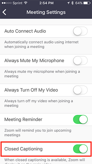 - When you are in a meeting where Closed Captions are available, they will automatically appear on your screen.